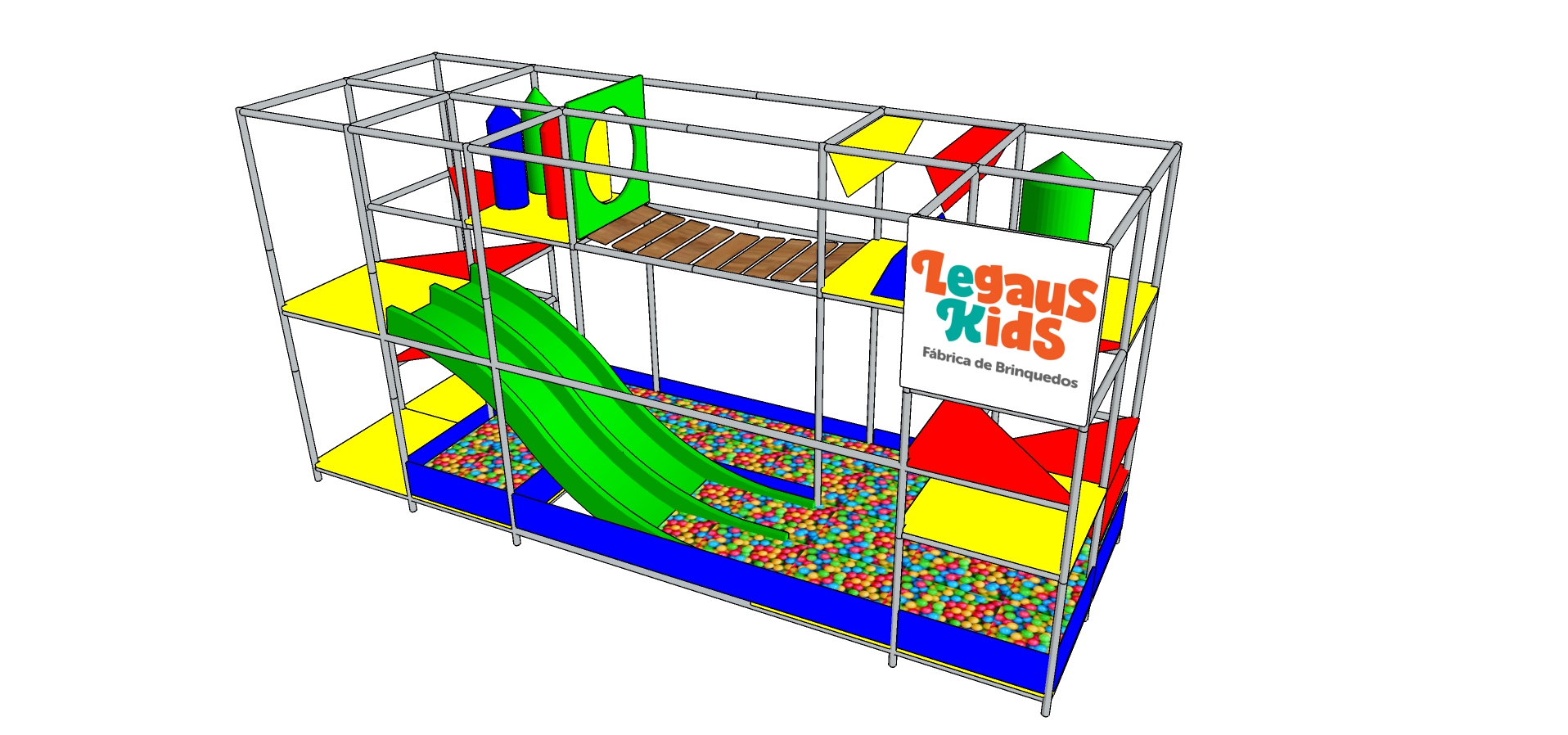 CONTÉM 03 NÍVEIS DE ACESSO. 01 NÍVEL CONTA COM PISCINA DE BOLINHAS E DECKS PARA O NÍVEL 02 QUE POSSUI ESCORREGADOR DUPLO DE FIBRA 200CM E O NÍVEL 03 POSSUI CAMINHO DE OBSTÁCULOS E UMA PONTE DE MADEIRA PLÁSTICA. ESTRUTURA EM TUBOS DE AÇO GALVANIZADO COM REDES DE PROTEÇÃO E ISOTUBOS. DECKS REVESTIDOS COM ESPUMA D28 E LONA PVC. DIMENSÕES DE 215X475X325CM (LXCXA) COR: MULTICOLORIDO.