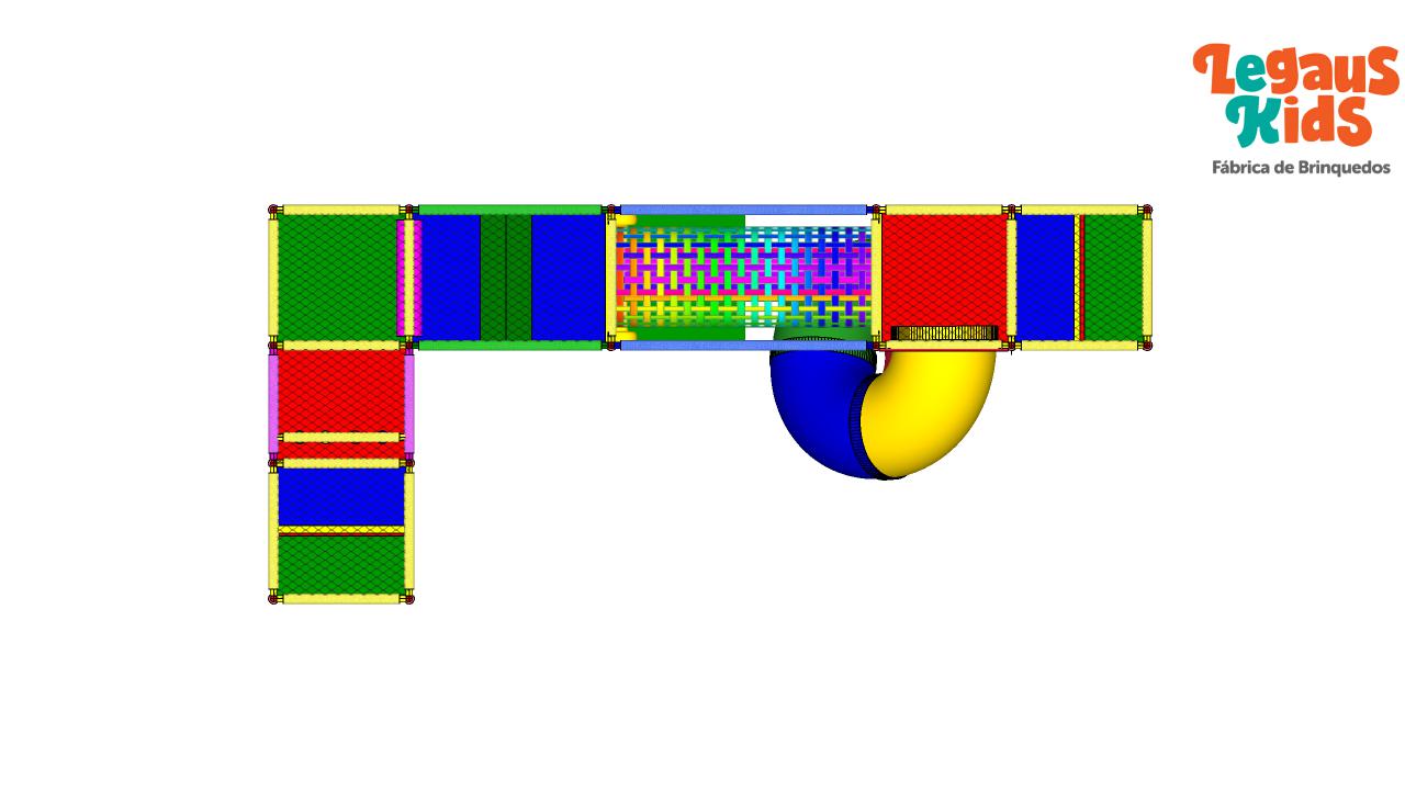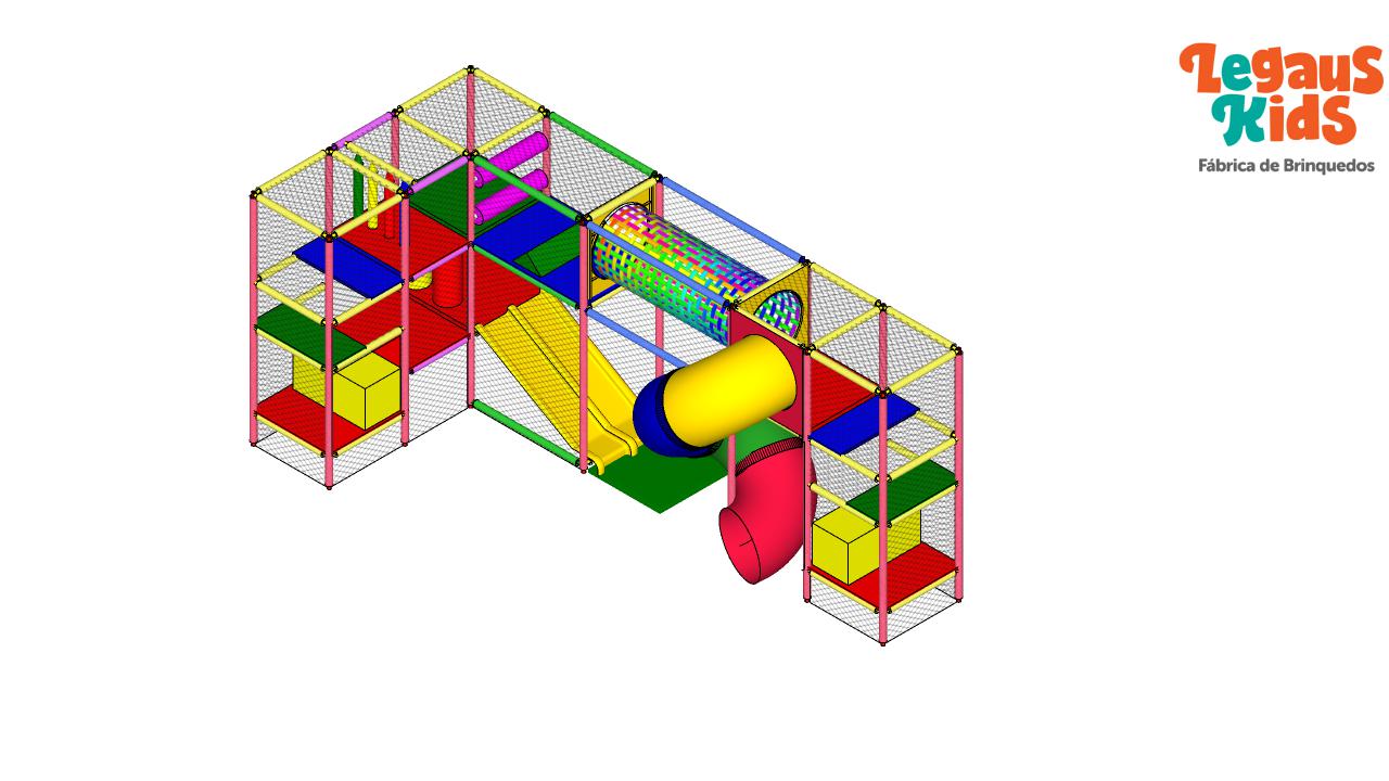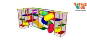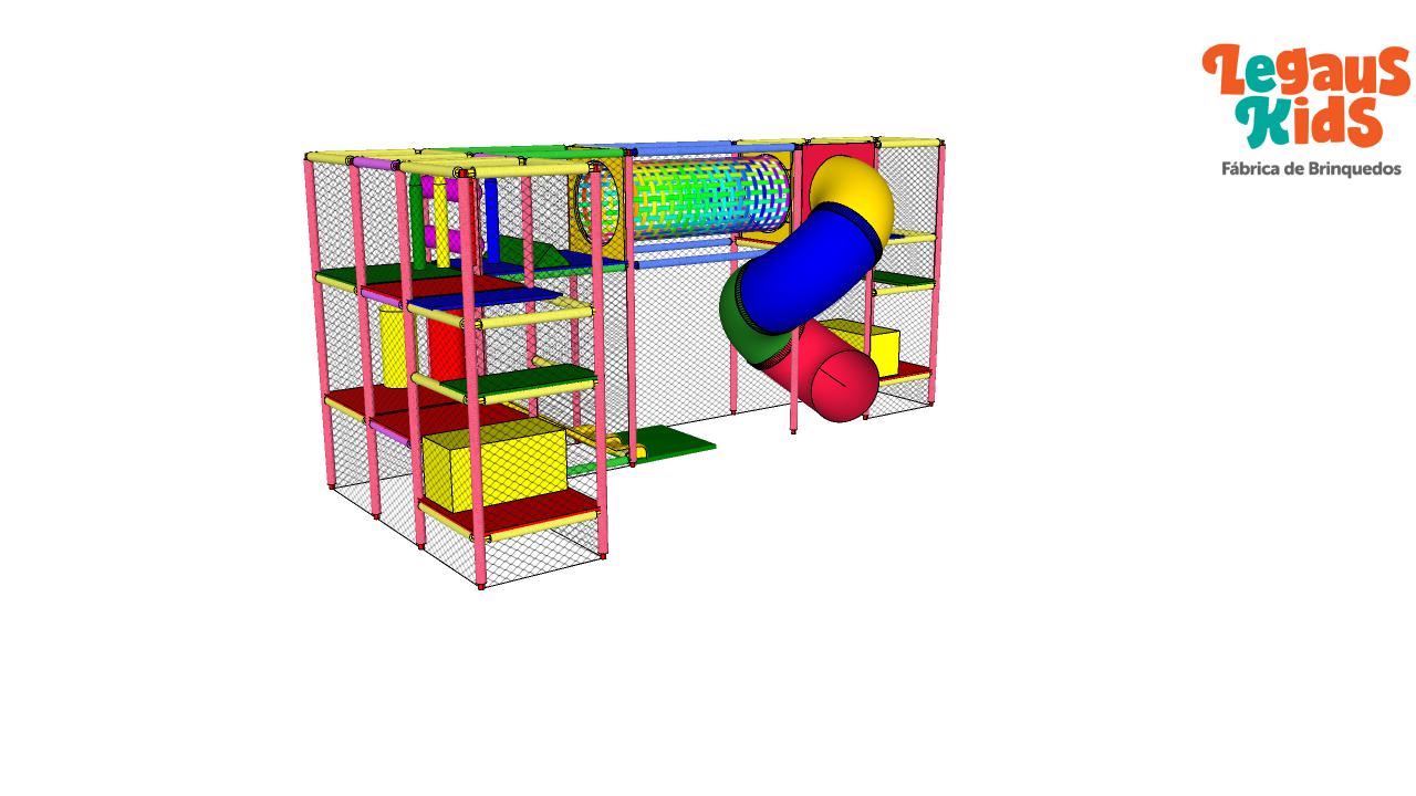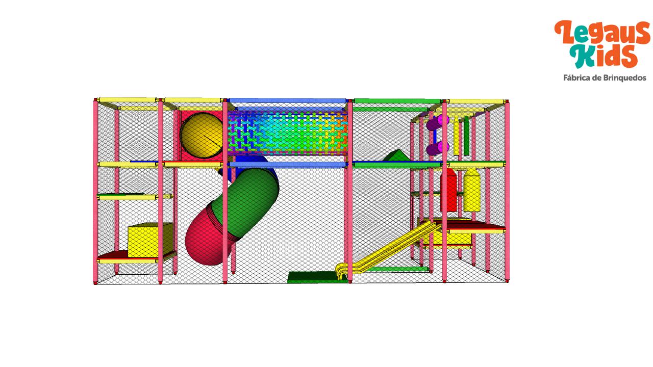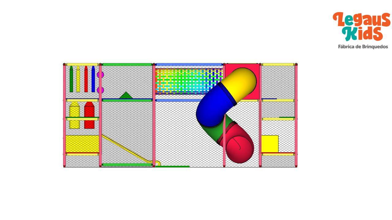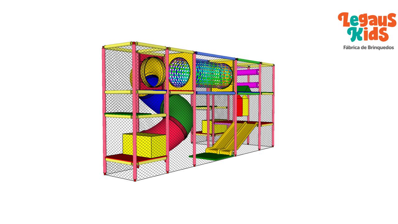 CONTÉM 02 NÍVEIS. O NÍVEL 01 CONTÉM CAMINHO DE OBSTÁCULOS E DESCIDA DE ESCORREGADOR DUPLO RETO, DECKS DE ACESSO AO NÍVEL 02 QUE CONTA COM CAMINHO DE OBSTRACULOS, CILINDRO TRANÇADO E UM ESCORREGADOR TOBOGÃ COM 4 CURVAS DE 90º . A ESTRUTURA DO BRINQUEDO É DE TUBOS DE AÇO GALVANIZADO COM REDES DE PROTEÇÃOM E ISOTUBOS. OS DECKS SÃO DE MDF E REVESTIDOS COM ESPUMA D28 E LONA PVC. COR: MULTICOLORIDO. DIMENSÕES DE 3.03X6.8X3.06 (AXCXL).