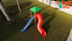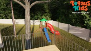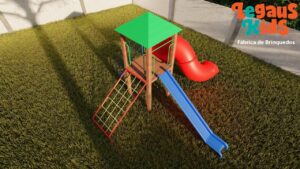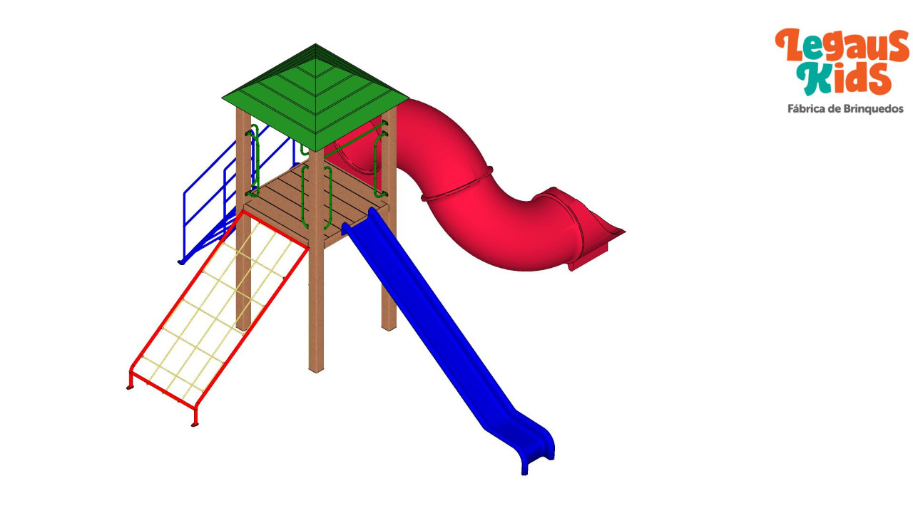 - DESCIDA: 1 escorregador reto de fibra e 1 descida de tobogã com duas curvas e ponteira