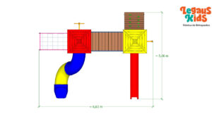 • DESCIDA: 1 descida bombeiro metálica, 1 descida escorregador de fibra, descida tobogã com ponteira